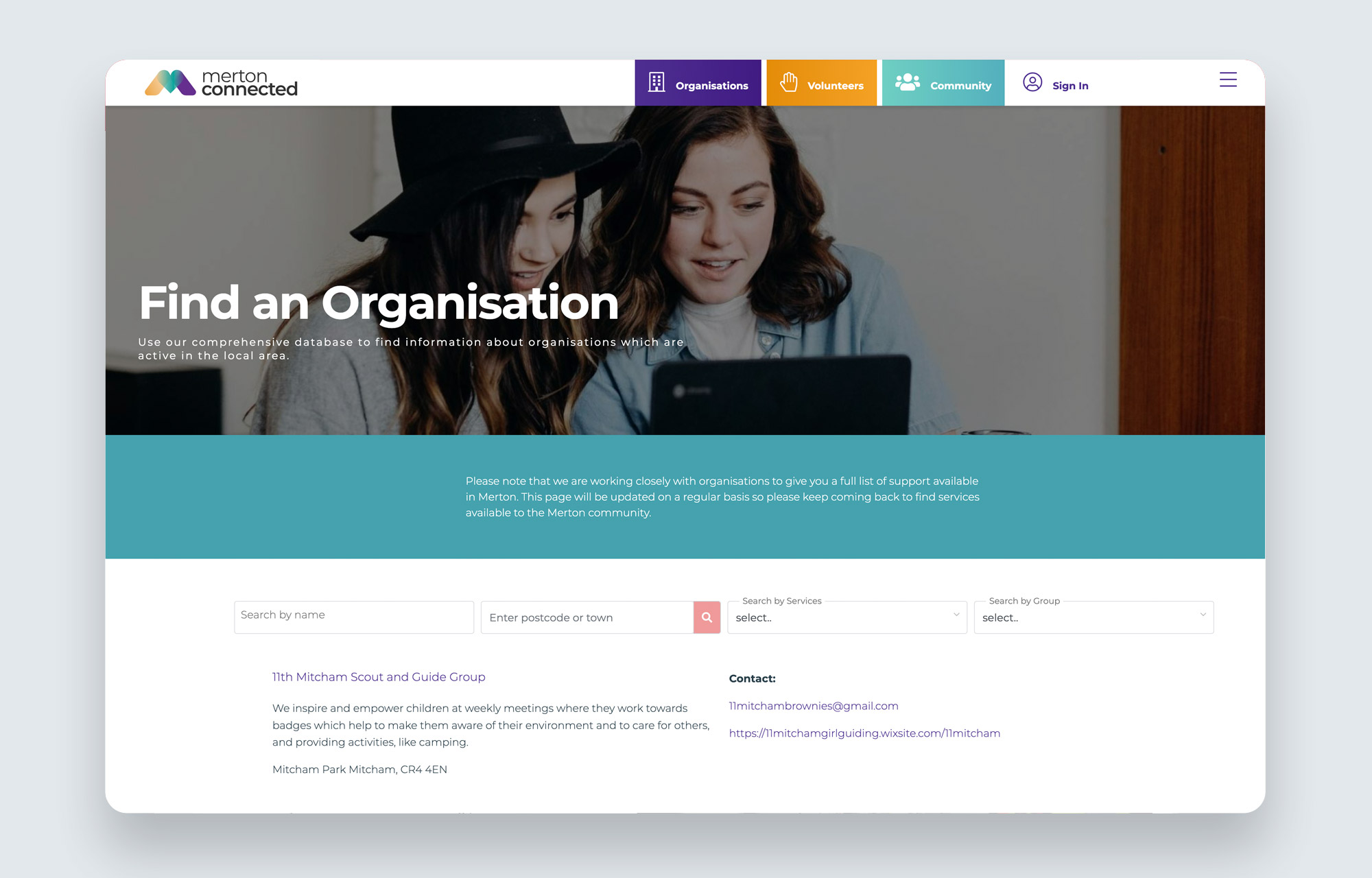 Merton Connected contacted Fluid to create a new brand identity and website for the charity, they wanted to connect organisations & volunteers within the community together. We integrated into their chosen CRM system and created a portal for volunteers to log into matching their organisations based on interest & availability.